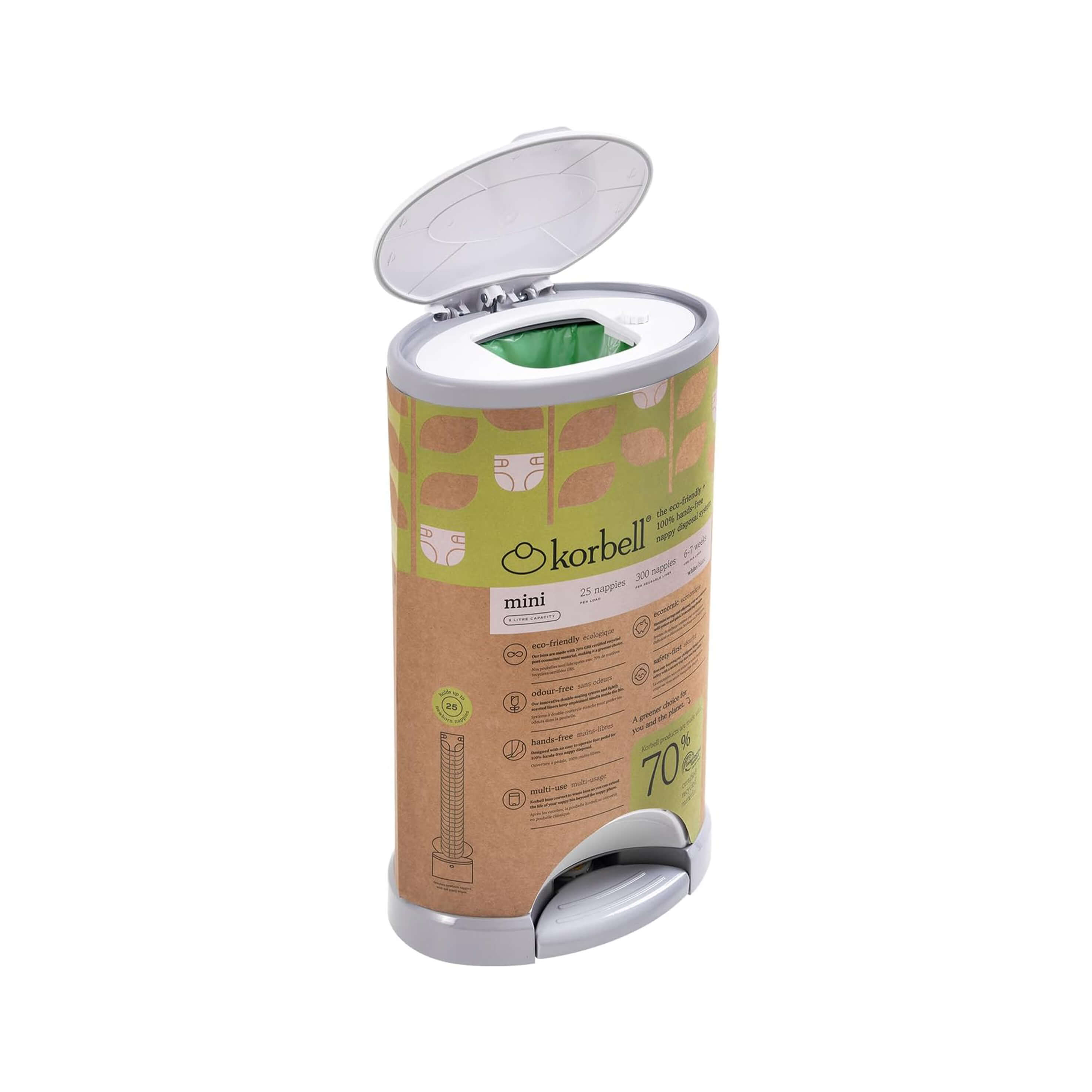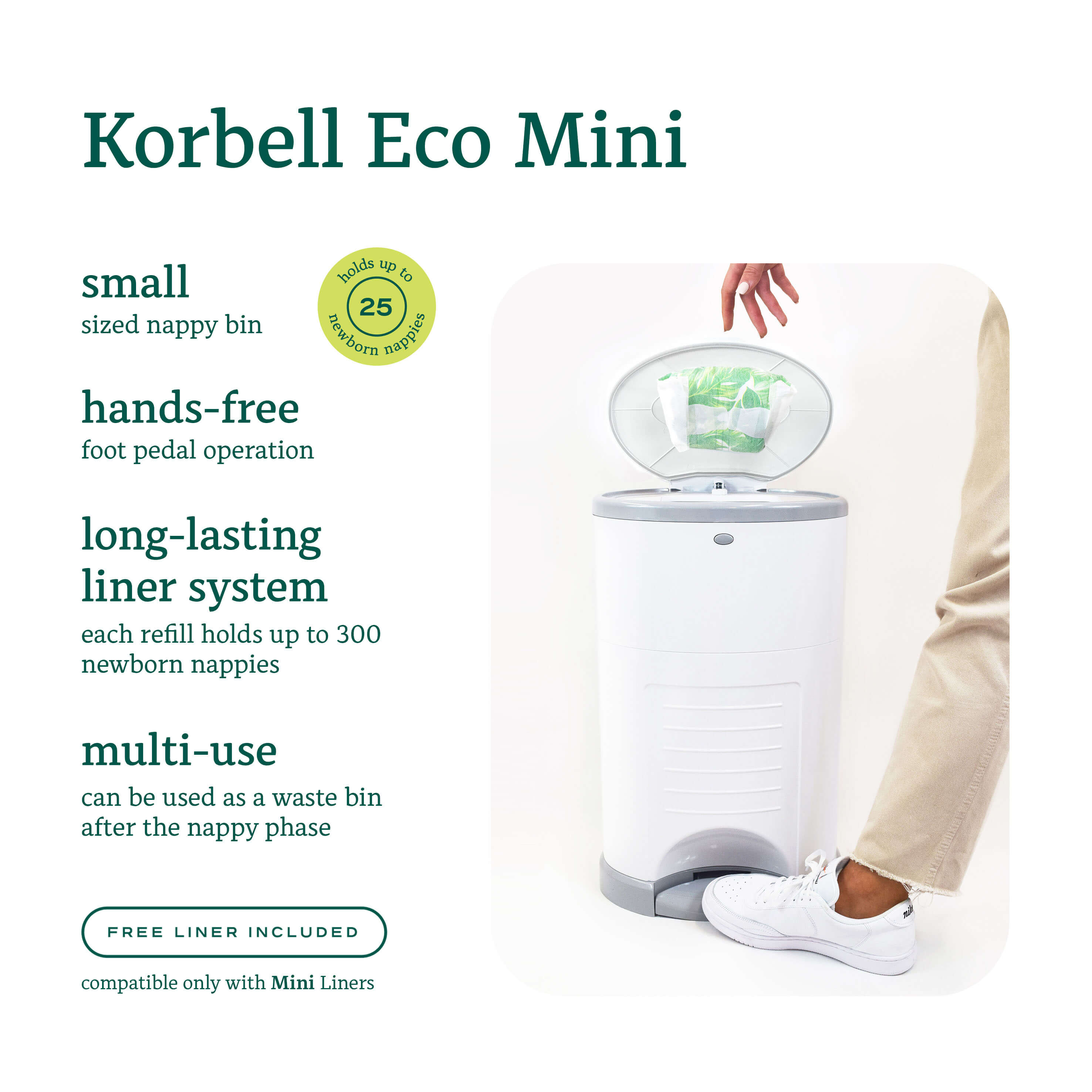 Korbell Mini 9 Litre Nappy Bin - Holds up to 25 nappies at a time and the liner lasts for up to 300 nappies or 6-7 weeks.