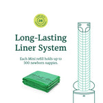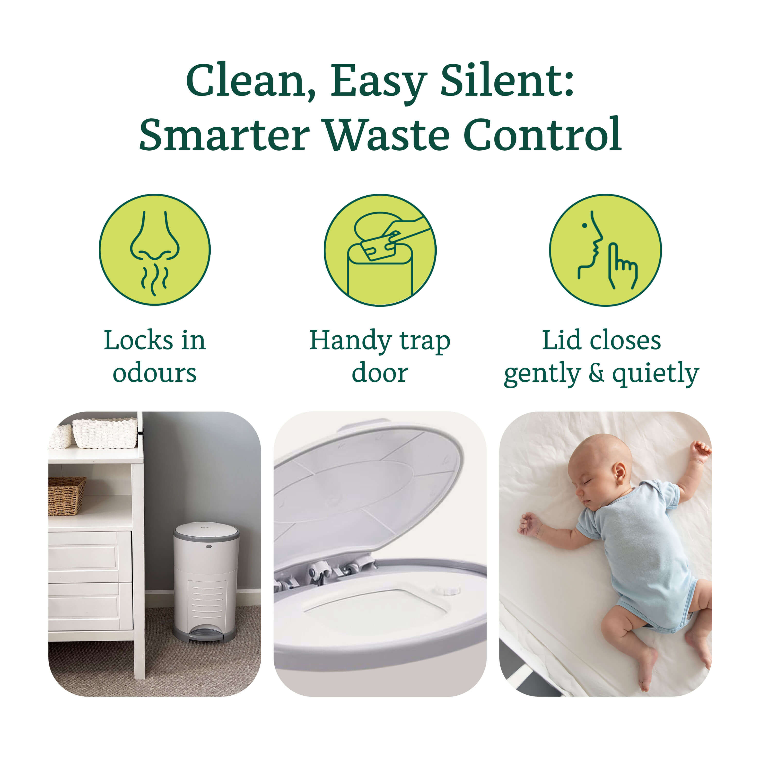 The ultimate long term nappy disposal solution. Featuring a clever eco-friendly refill system that makes it easy to change when the bin is full.