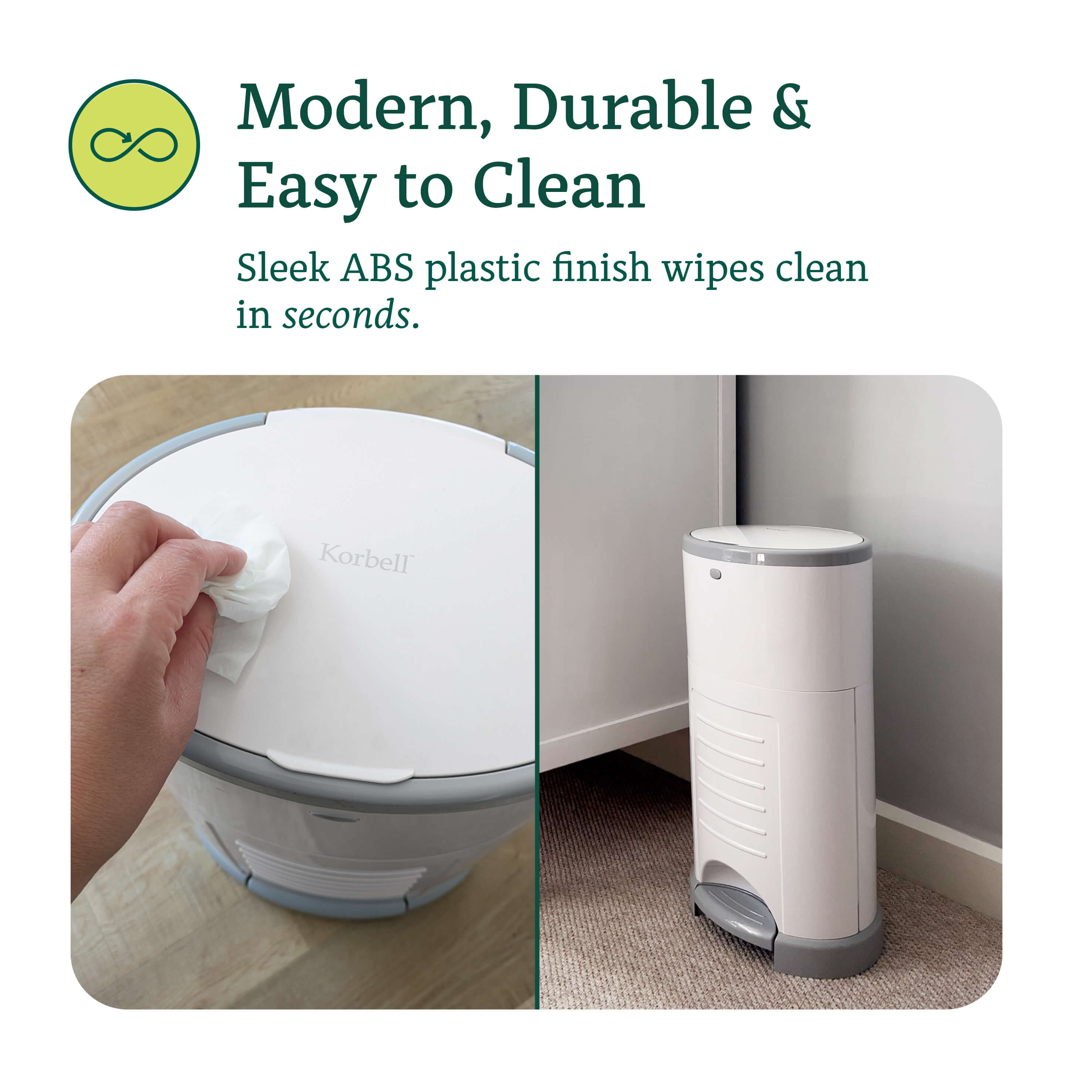Korbell Classic 16 Litre Nappy Bin - Holds up to 45 nappies at a time and the liner lasts for up to 495 nappies or 10–11 weeks.