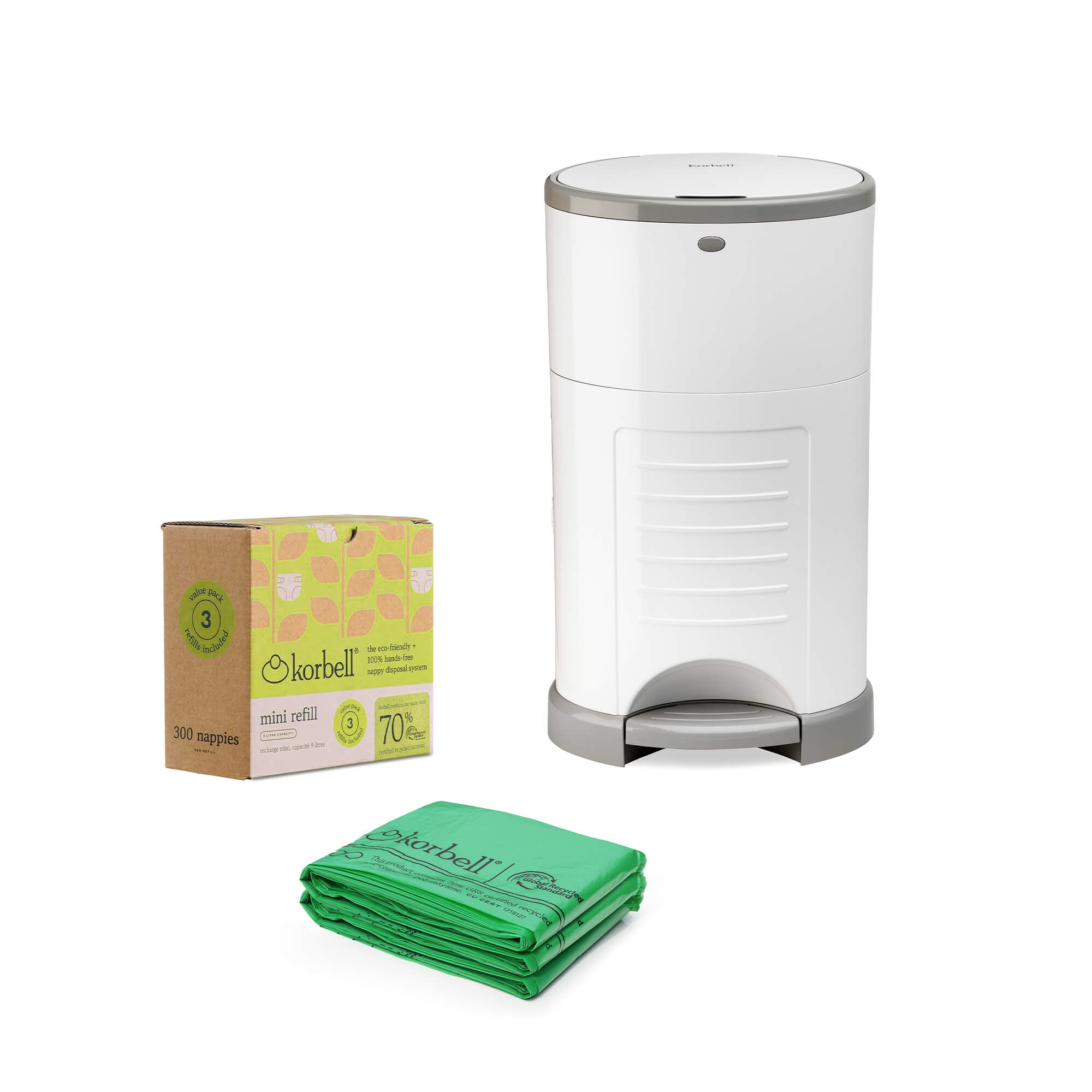 Korbell Mini 9L Eco-Bin Nappy Bin Bundle - Pure White
