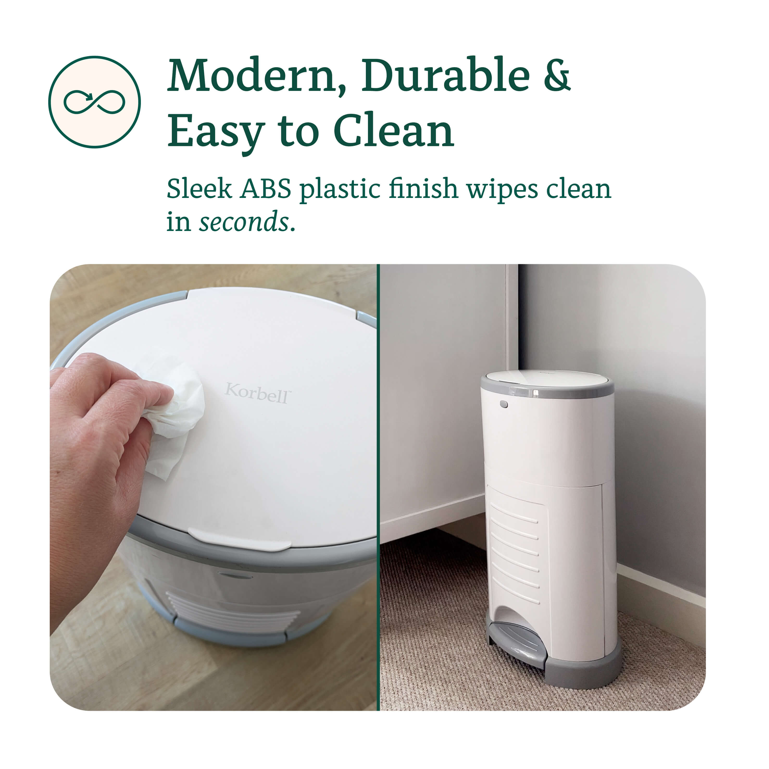 Korbell Classic 16 Litre Nappy Bin - Holds up to 45 nappies at a time and the liner lasts for up to 495 nappies or 10–11 weeks.