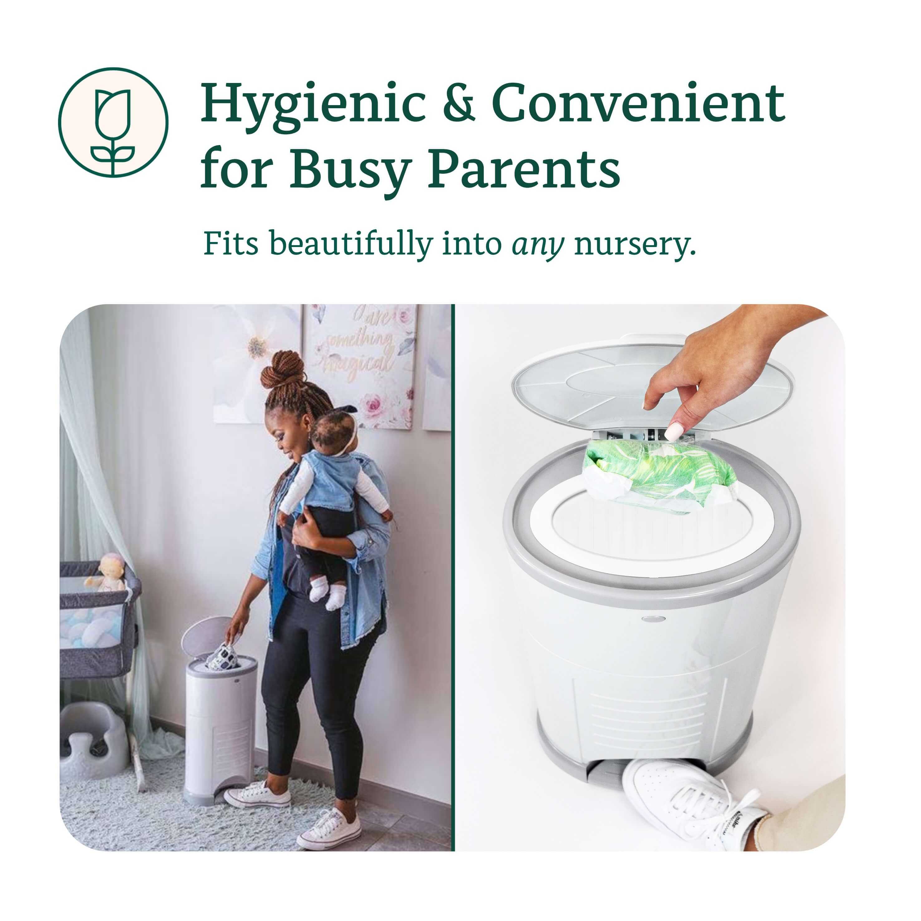 The ultimate long term nappy disposal solution. Featuring a clever eco-friendly refill system that makes it easy to change when the bin is full.