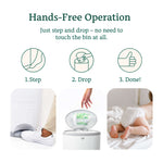 Korbell are the easiest to use – simply STEP on the foot pedal, DROP the nappy in, and you’re DONE. Unlike many technology bins, you don’t have to bend over to slide a door open, squish a nappy through a hole or touch anything – 100% hands free!