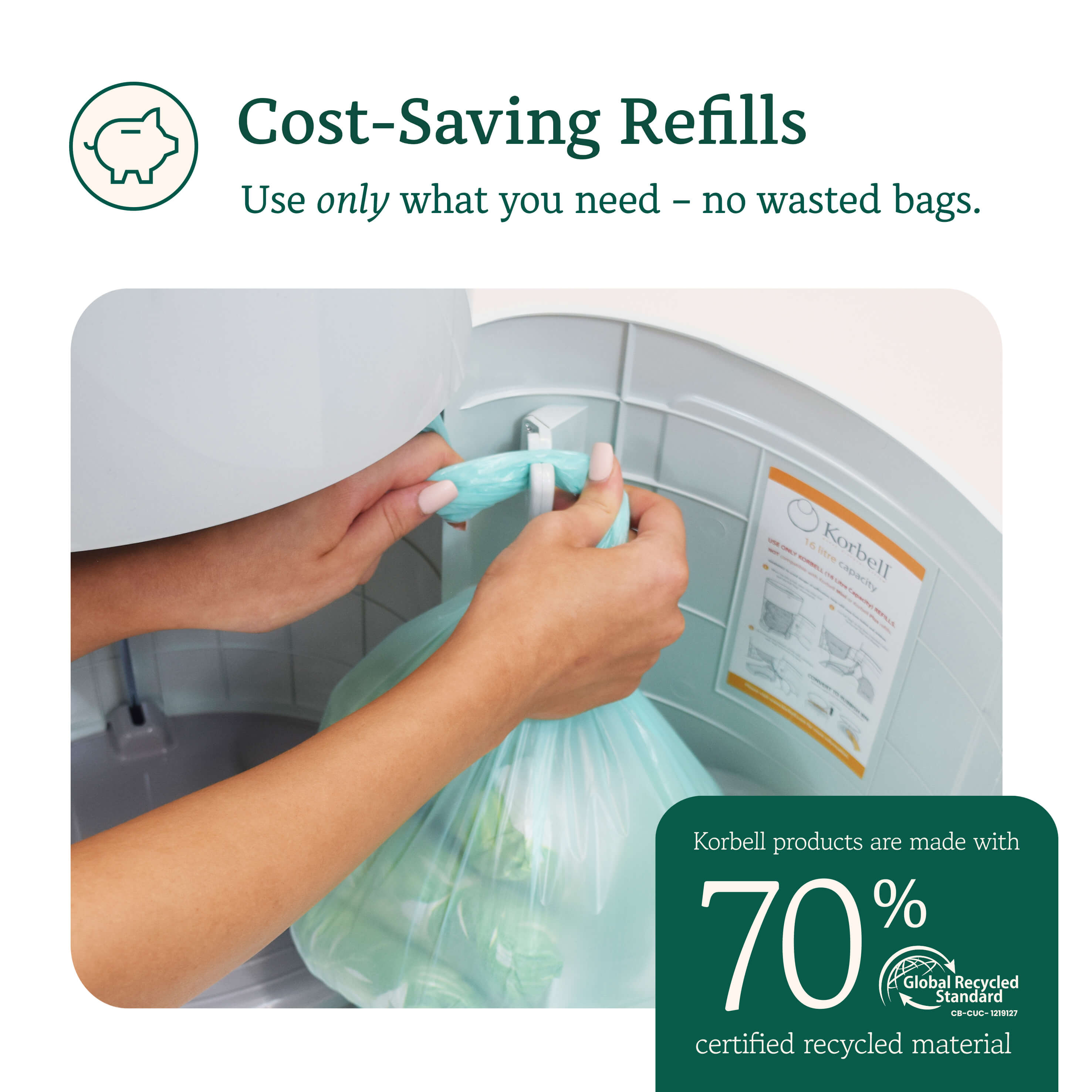Korbell Plus 26 Litre Nappy Bin - Holds up to 65 nappies at a time and the liners last for up to 580 nappies or 17-18 weeks.