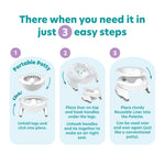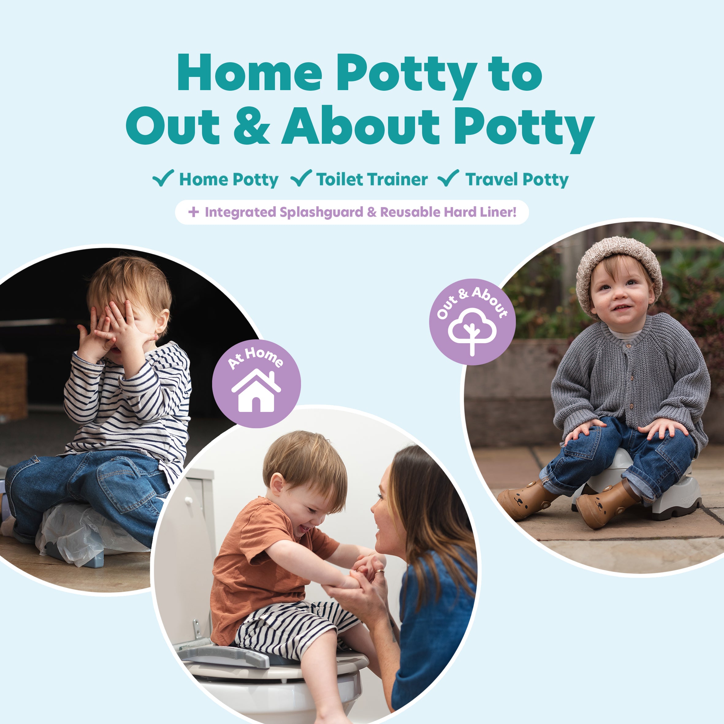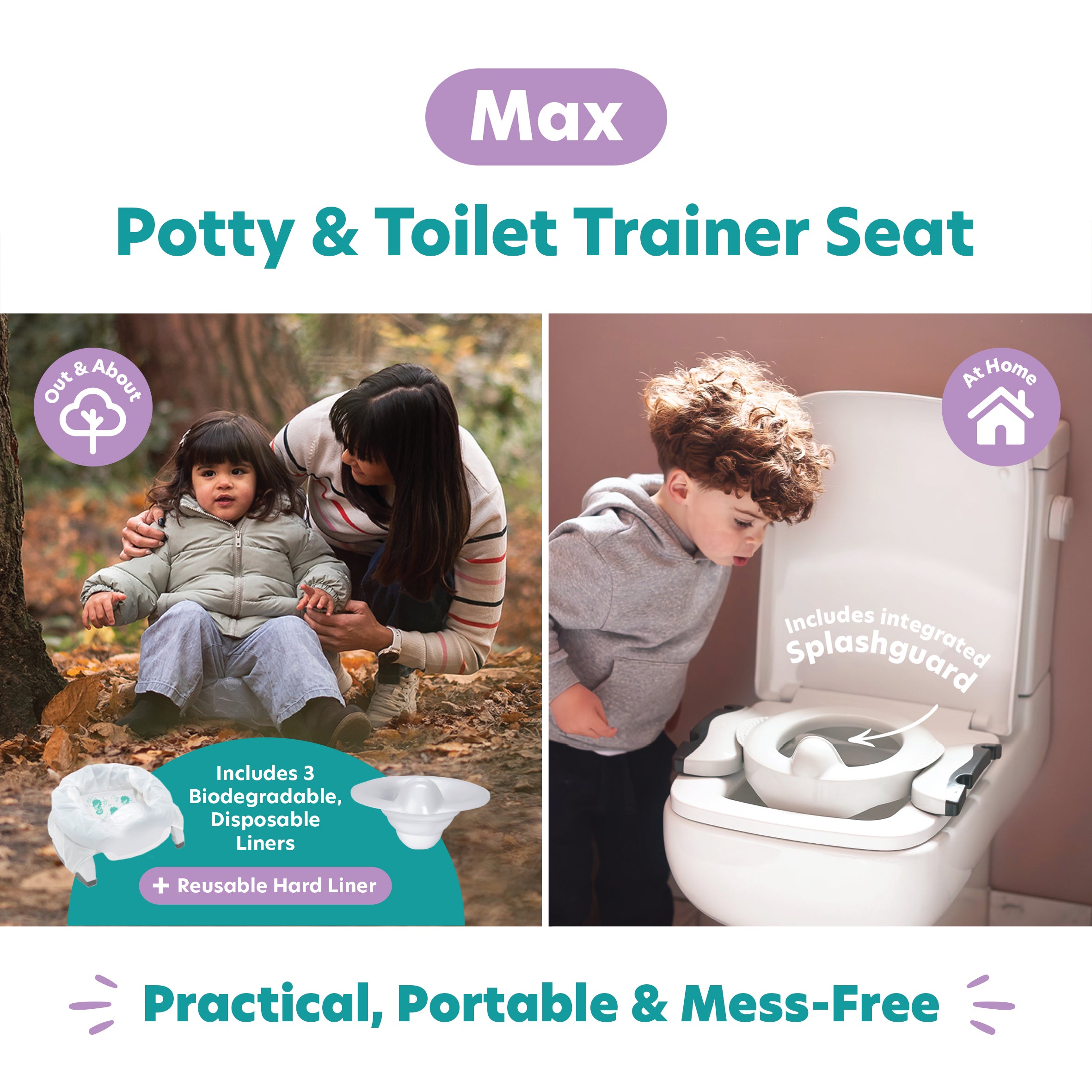 Benefit from flexible potty training at home or on the go, with the Potette Max® 3-in-1 Potty. Its versatile design allows it to be used as a standalone potty with it’s hard liner and disposable liners, or as a toilet training seat, making it suitable for all stages of potty training.