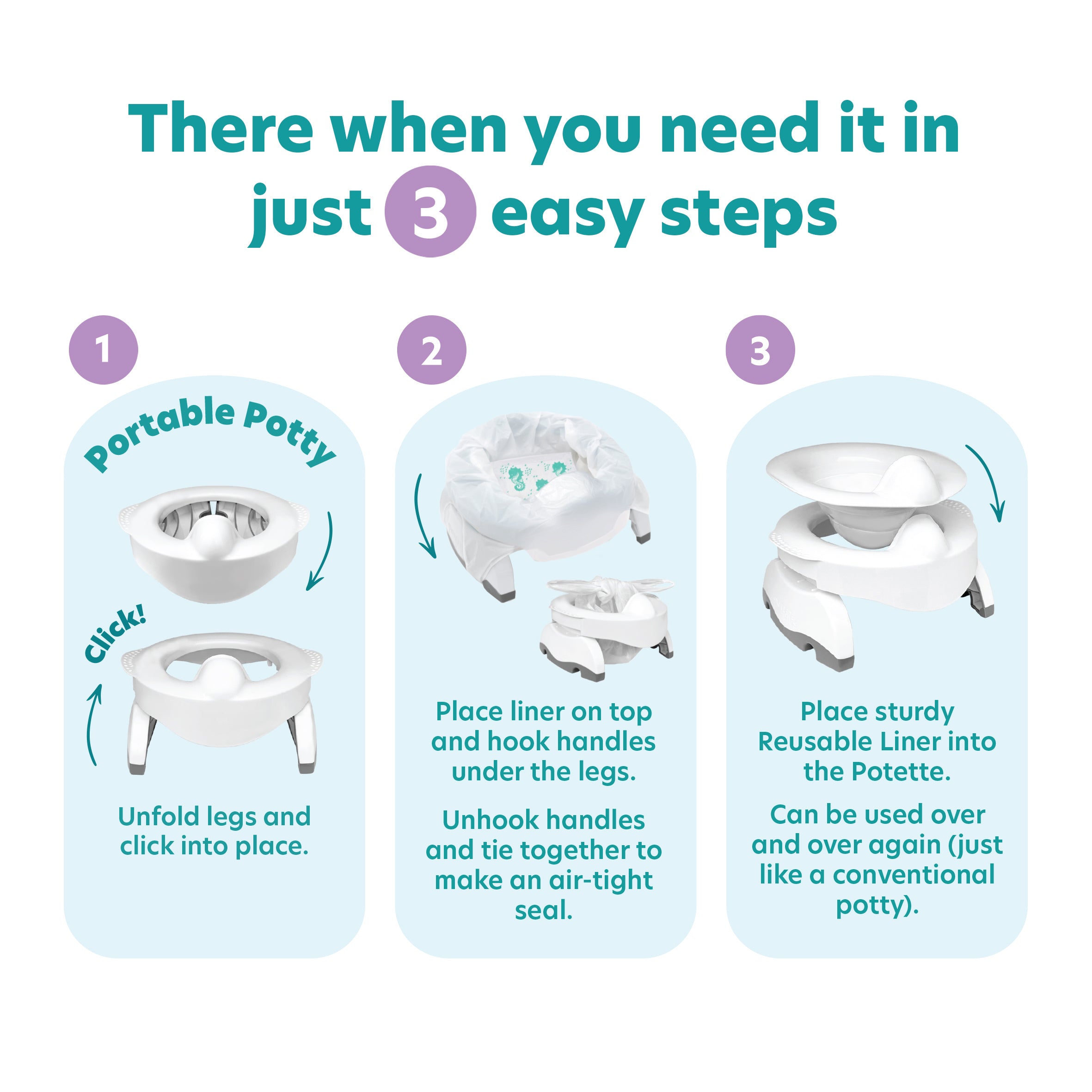 Additional Liners: Need more liners? Purchase additional Potette® Disposable Potty Liners in packs of 30 or 60.