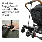 BuggyBoard® Maxi is the mid-range board, featuring a large platform, reflective wheels, and option to add and remove a saddle seat (sold separately). Fits between uprights 31-54 cm.