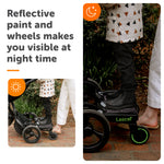 BuggyBoard® Maxi is the mid-range board, featuring a large platform, reflective wheels, and option to add and remove a saddle seat (sold separately). Fits between uprights 31-54 cm.